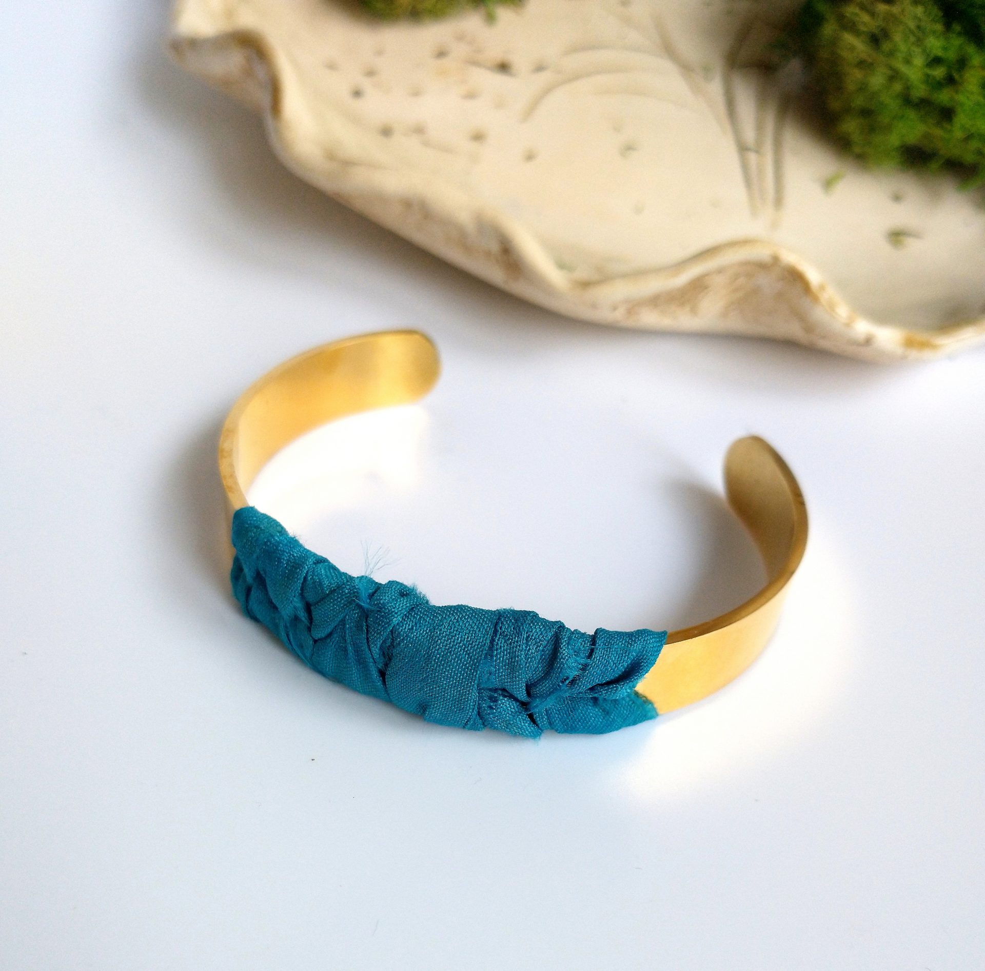 Bransoleta ze stali szlachetnej opleciona jedwabiem sari pochodzącym z recyklingu. Bransoletkę można delikatnie regulować. Piękna i oryginalna dopełni każdą kreację.